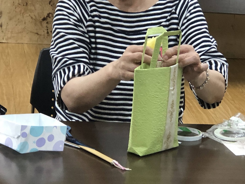 今回は1枚の和紙から二つのバックを作ってみてもらいました。