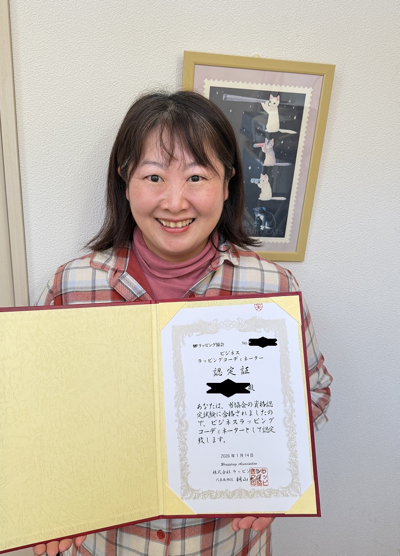 今年初めのラッピングは、ビジネスラッピング認定試験でした。