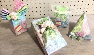 馬宮コミュニティセンターは、6月にもどっぷりかかるので、紫陽花っぽい柄の作品も置いておきました。
