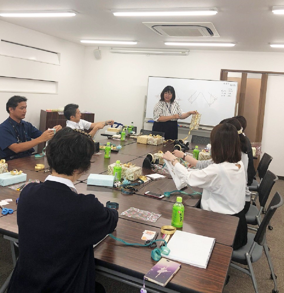 埼玉県にあります企業様で、ラッピングの基本とマナーに関する最初の大切なポイントと、1番使うであろうラッピング講座を行ってまいりました。