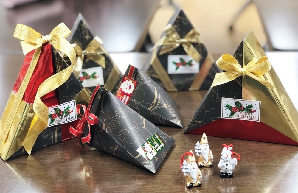 生徒様達は、ご自身の選んだ包装紙で、好きにアレンジしてもらいながら作成してもらいました。