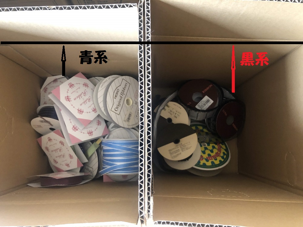 リボンを棚からぜーんぶ出す出す。