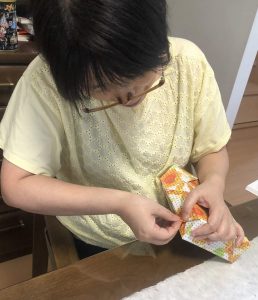 タックが沢山入っていて、お花も飾れるラッピングで締めさせていただきました。